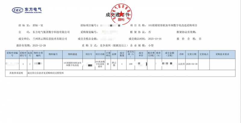近日,协会会员单位西云图科技(成都)有限公司凭借在工业数字孪生领域的深厚积累,成功中标东方电气 101 联箱轻容机加车间数字化改造采购项目。此次合作,将为东方电气打造新一代车间级智能化管理中枢,推动生产全流程透明化、高效化升级。