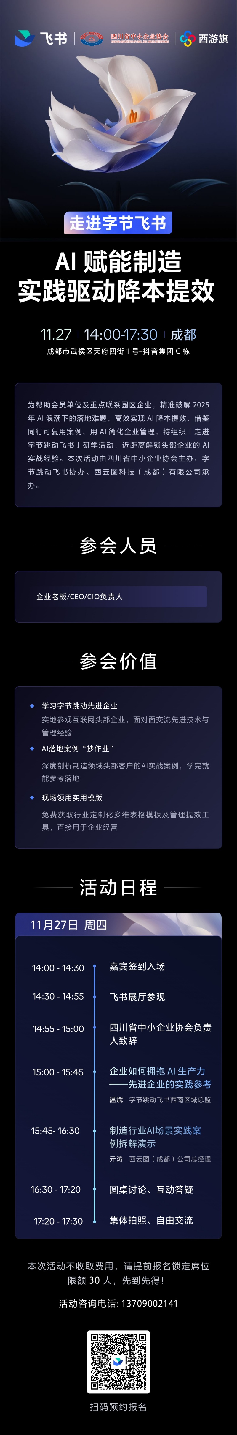 走进字节飞书AI赋能制造实践驱动降本提效研学活动通知