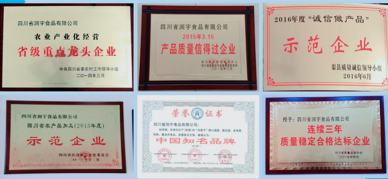 公司是全县营养餐定点加工配送企业、四川省农业产业化经营重点龙头企业、四川省企业技术中心、四川省农产品加工⽰范企业、四川省市场质量合格单位、四川省高新技术企业、四川省“专精特新”中小企业。