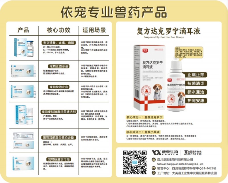 协会会员单位四川康泉生物科技有限公司成立于2017年,位于四川省大英县工业集中发展区,公司占地2400㎡,现有员工125人,拥有生产线15条;是一家专业从事兽药,消毒剂、宠物药,宠物食品,饲料添加剂,中药材种植、加工生产、研发和销售于一体现代新型“企业+基地+农户”的生物科技公司。