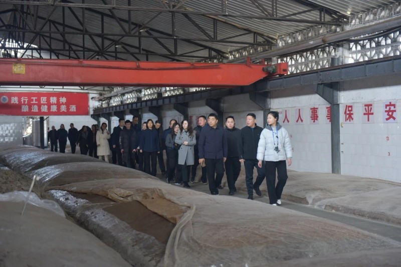 在酿造车间,调研团队详细了解了公司传承千年的古法酿造技艺与现代化生产工艺的融合应用,对车间内蒸粮、摊晾、拌曲等核心工序的自动化改造成果给予高度评价。