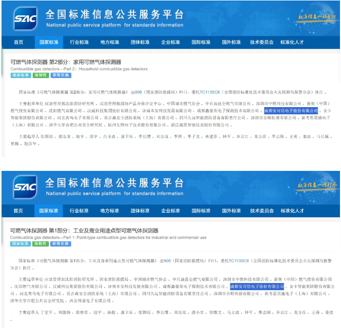 1 月 28 日,全国标准信息公共服务平台正式发布两项强制性国家标准 ——GB 15322.1-2026《可燃气体探测器 第 1 部分:工业及商业用途点型可燃气体探测器》与 GB 15322.2-2026《可燃气体探测器 第 2 部分:家用可燃气体探测器》,协会会员单位成都安可信电子股份有限公司作为主要参编单位深度参与标准编制。