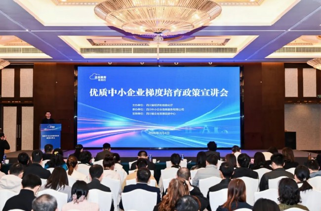3月4日,四川省中小企业政策服务市州行活动——优质中小企业梯度培育政策宣讲会在成都举行。本次活动为期两天,由四川省经济和信息化厅主办,四川中小企业信息服务有限公司承办,聚焦优质中小企业梯度培育工作,开展政策解读与专业辅导,旨在帮助各级中小企业主管部门准确把握最新政策方向、提升服务能力,同时引导广大中小企业明晰政策要点、坚定发展信心,为全省中小企业高质量发展蓄势赋能。来自全省各地的专精特新中小企业代表、经济和信息化主管部门负责人、产业园区相关负责人近500人参加。