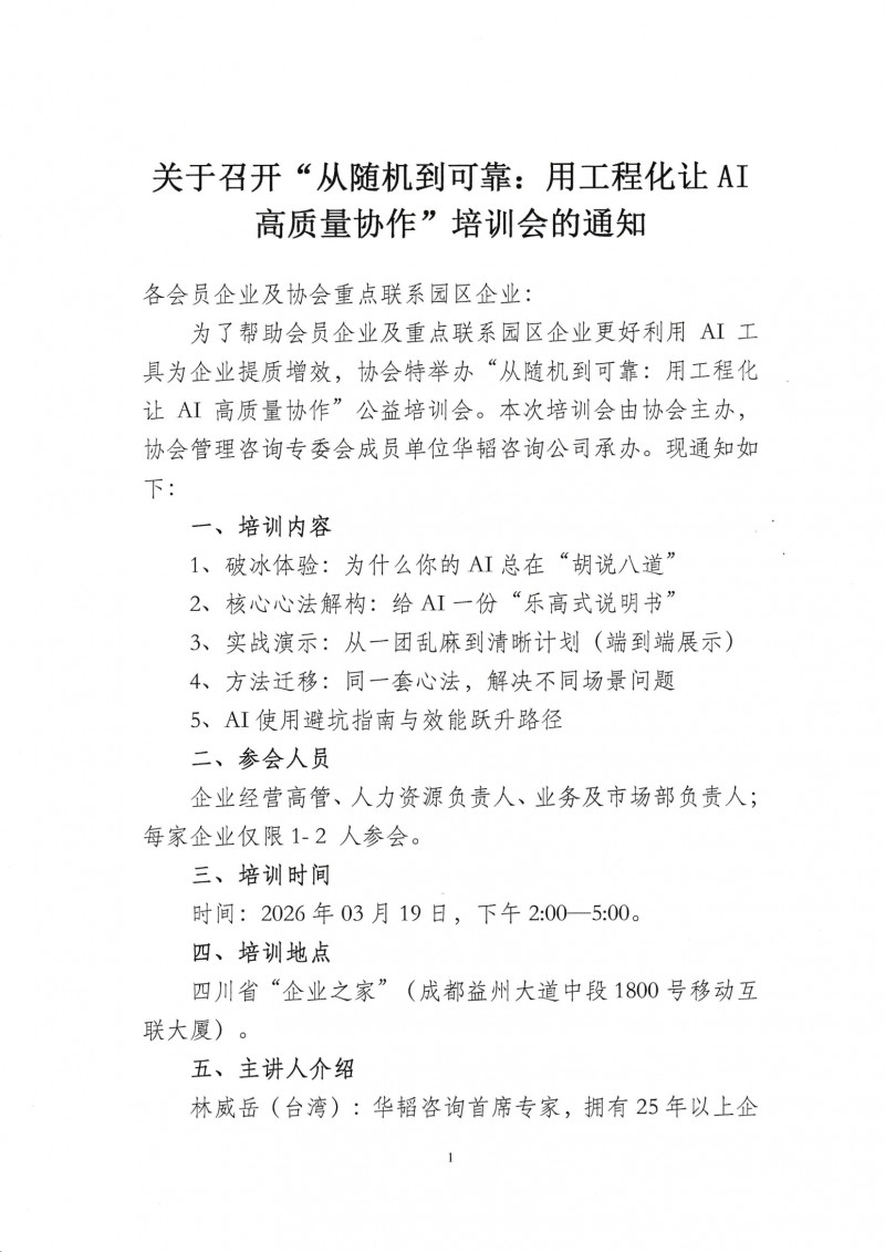 关于召开“从随机到可靠:用工程化让AI高质量协作”培训会的通知