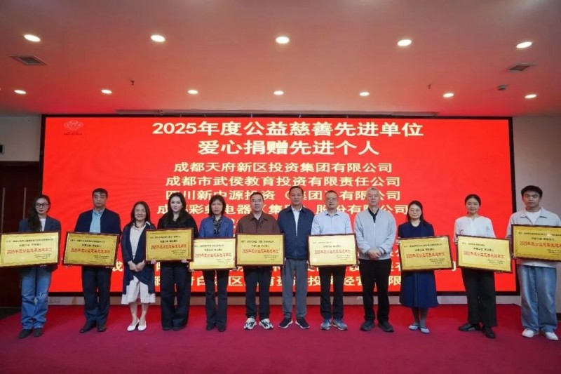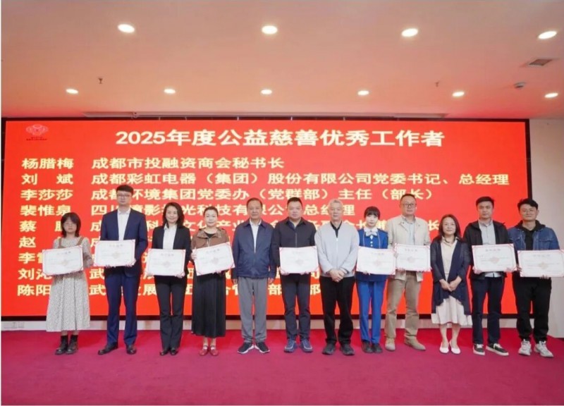 4月8日,成都市关心下一代基金会“关爱未来·携手同行”公益慈善成果展示暨2025年度公益慈善表扬大会在成都隆重举行。协会副会长单位成都彩虹电器(集团)股份有限公司应邀参会,凭借长期深耕关心下一代公益事业、持续助力青少年健康成长的突出贡献,荣获2025年度公益慈善先进单位;集团党委书记、总经理、成都市关心下一代基金会副监事长刘斌,党委常务副书记、副总经理徐思国,双双获评2025年度公益慈善优秀工作者。